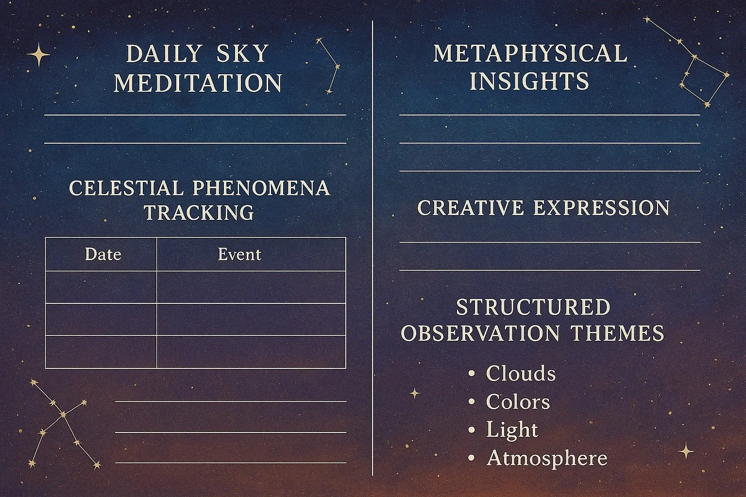 In our fast paced world, we often forget to look up and marvel at the infinite canvas painted above us each day and night. A sky journal offers a beautiful way to reconnect with the cosmos, cultivating mindfulness while documenting the ever changing celestial dance that unfolds overhead. This practice invites you to become an active participant in the universal story, where every twinkle holds meaning and every cloud carries wisdom.